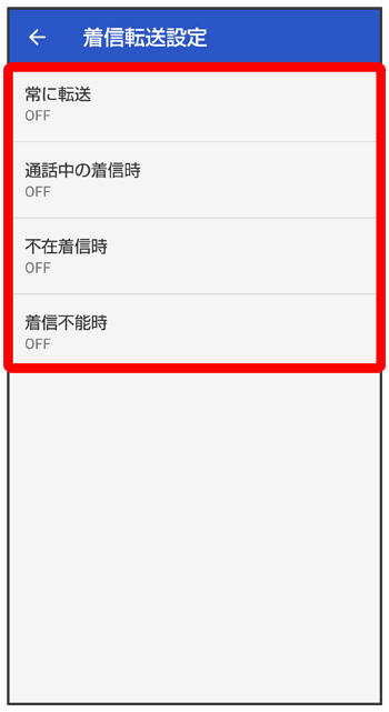 - をタップしたときは、常に着信を留守番電話センターに転送するかどうかを設定できます。