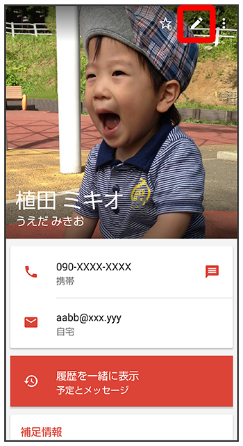 連絡先編集画面で登録する種別の- 「カスタム」を選択したときは、このあと種別名を入力と操作してください。