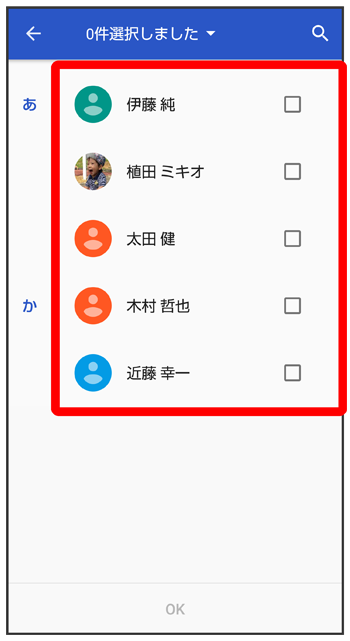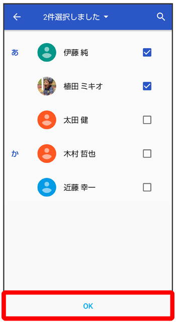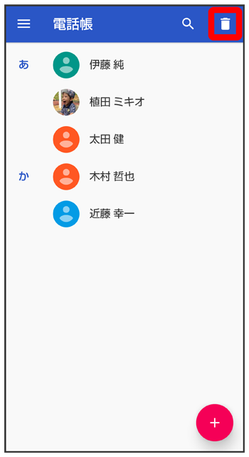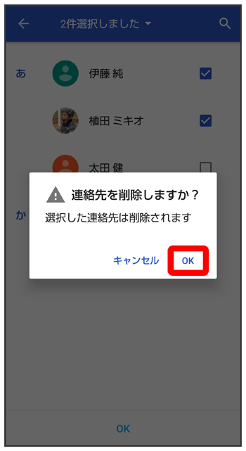 - 複数の連絡先を削除する場合は、続けてほかの対象の連絡先をタップします。
