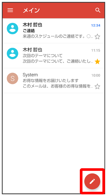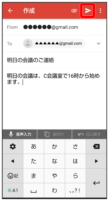 メール作成画面で- を選択すると、Google ドライブに保存したファイルを添付できます。