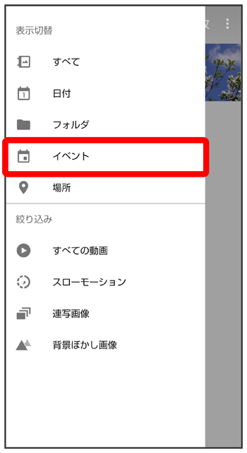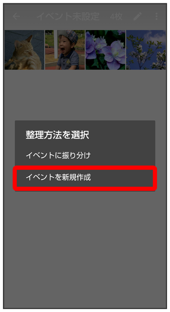 - カレンダーに予定を登録すると、予定の期間に撮った写真/動画は、同じイベントとして自動的に分類されます。