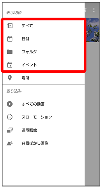 写真/動画一覧画面またはフォルダ画面が表示されます。