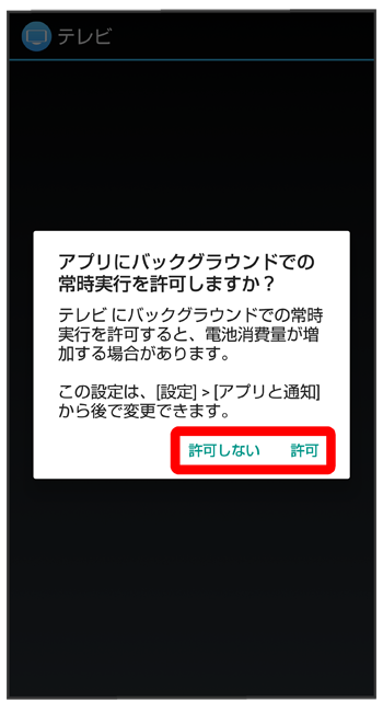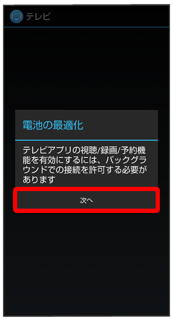 - 電池の最適化を行った場合、画面消灯中(充電中を除く)はアプリが動作しません。テレビの録画予約が実行されないなど、意図しない現象が発生することがあります。