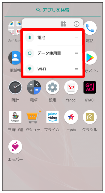 アプリをロングタッチすると、アプリにより機能へのショートカットが表示される場合があります。機能ショートカットをタップすると、その機能を直接起動できます。