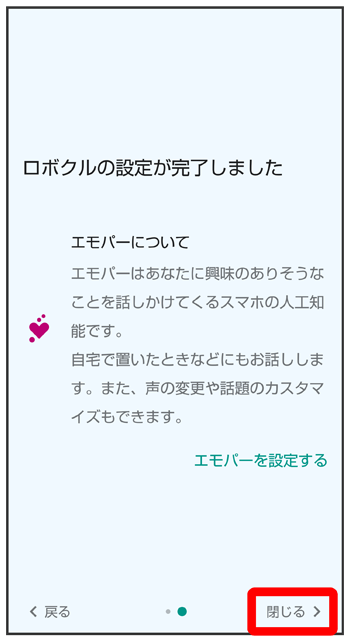 - エモパーの設定を行う場合は、をタップし、画面に従って操作してください。