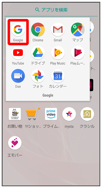 ホーム画面を上にフリック