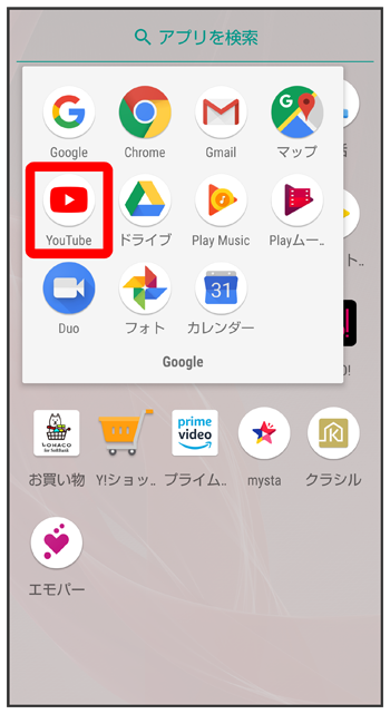 YouTube画面で- 確認画面が表示されたときは、画面に従って操作してください。