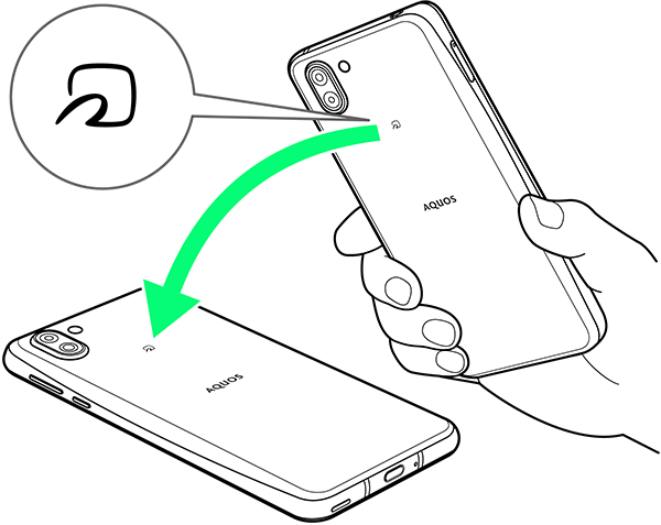 送信するデータ(電話帳/画像など)を表示させた状態で、本機の背面にNFC対応機器を重ねる