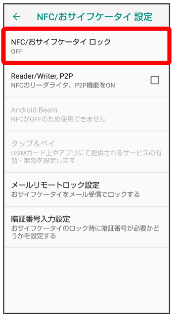 NFC/おサイフケータイ®設定画面で/操作用暗証番号を入力こちらで検索できます