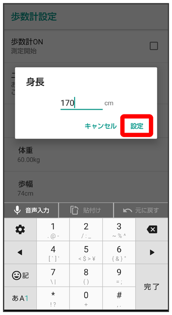 - お買い上げ時は、ユーザー情報に仮の数値が登録されています。ご利用の前に、ユーザー情報を正しく設定しておいてください。