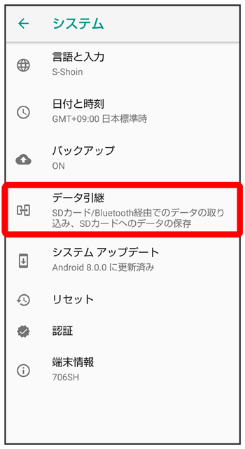 データ引継画面が表示されます。