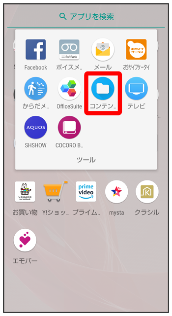 ダウンロード画面で、ファイルをロングタッチこちらで検索できます