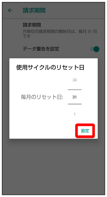 データ使用量をリセットする日を設定する