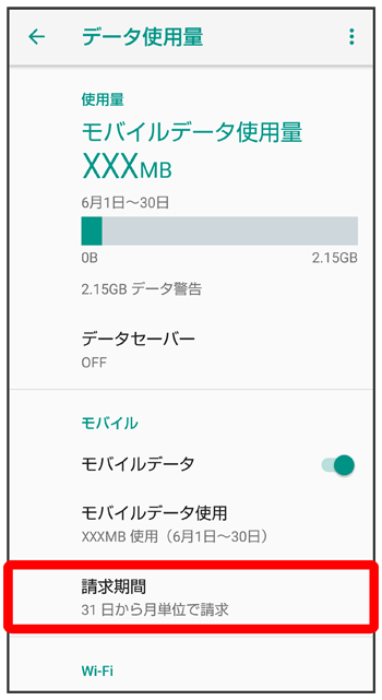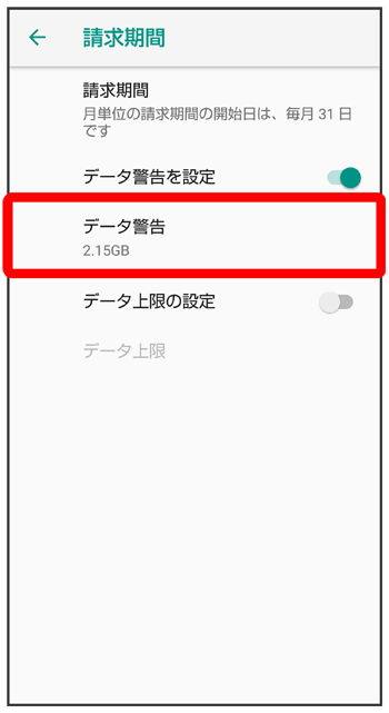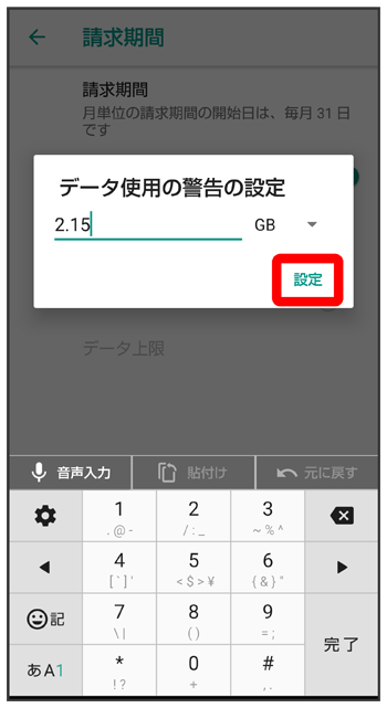をタップすると、単位(MB/GB)を変更できます。- データ使用量は目安です。実際の使用量とは異なる場合があります。