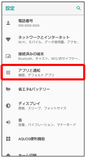 デフォルト アプリ画面で画面に従って操作ブラウザやホーム画面、電話、SMSなどを利用するときの既定のアプリを設定する