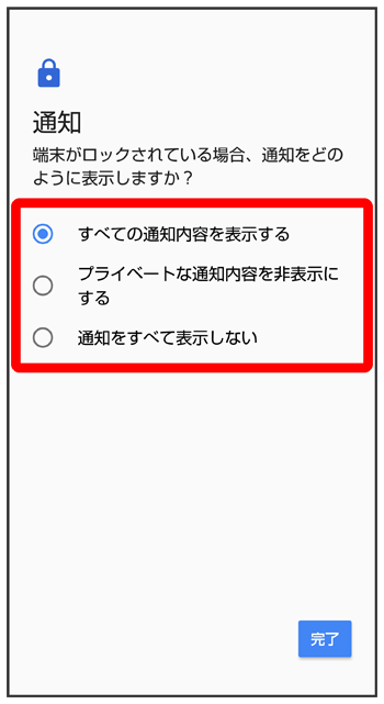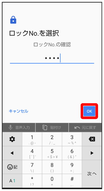 - 変更前の画面ロック解除方法がまたは以外のときは、設定が完了します。