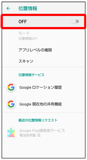 | スキャン | 位置情報の精度を向上させるためにWi-FiやBluetooth®のスキャンをするかどうかを設定します。 |