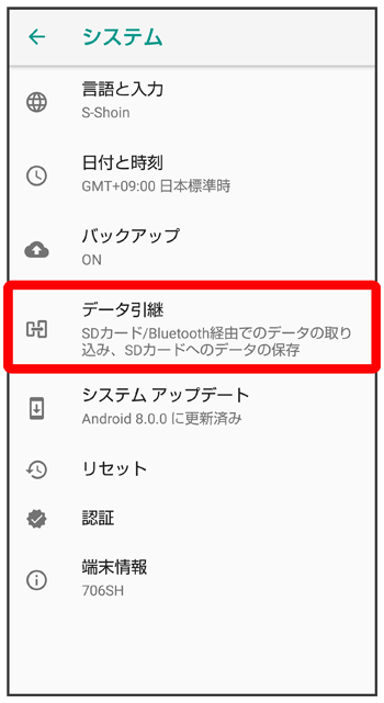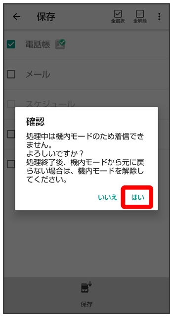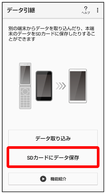 本機の電話帳、スケジュール、ユーザー辞書/学習辞書、エモパーをSDカードに保存することができます。