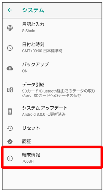 端末情報が表示されます(端末情報画面)。
