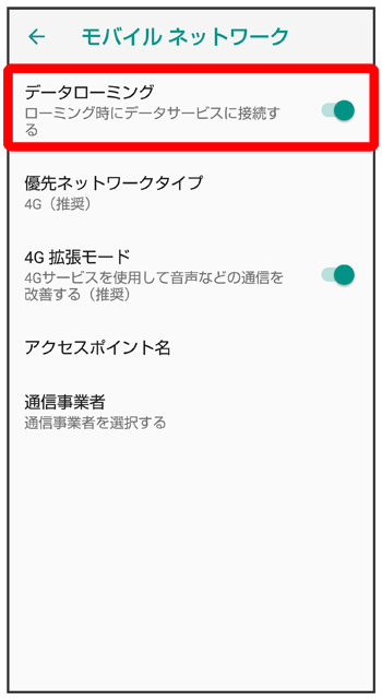 データローミングの設定を変更する
