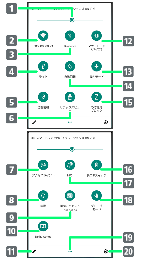- 機能ボタンの表示領域を左右にフリックすると、シートを切り替えることができます。