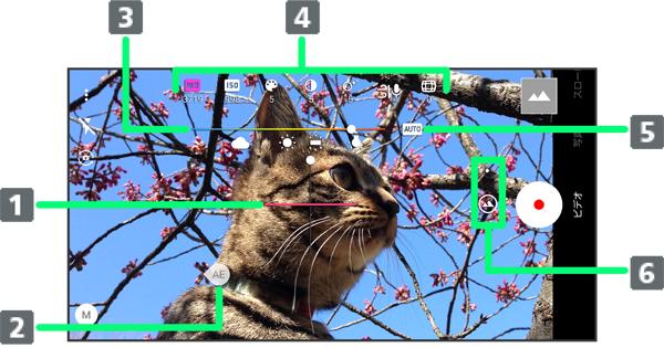 ホワイトバランスやISO感度などの設定ができます。 - オートアイコン
