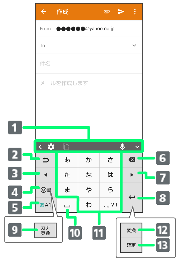 - 絵文字/記号/顔文字を入力(長押しすると、入力拡張プラグインを表示)