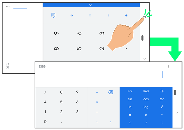 をタップすると、表示画面が横表示に切り替わります。縦表示に切り替えるときは、本機を縦向きに回転させて
