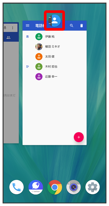 マルチウインドウ画面下にタップしたアプリが表示されます。