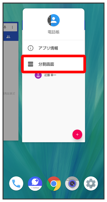 本機の表示画面を分割し、2つのアプリを表示、操作できます。