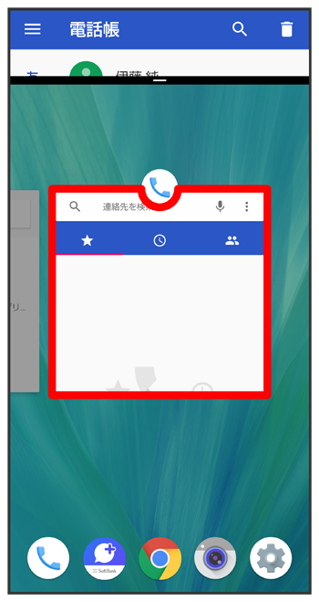 マルチウインドウ画面下に表示されたアプリの履歴一覧から、次に操作したいアプリをタップ