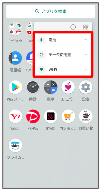 アプリをロングタッチすると、アプリにより機能へのショートカットが表示される場合があります。機能ショートカットをロングタッチし、ホーム画面の追加したい位置で指を離すと、機能へのショートカットとして追加することができます。