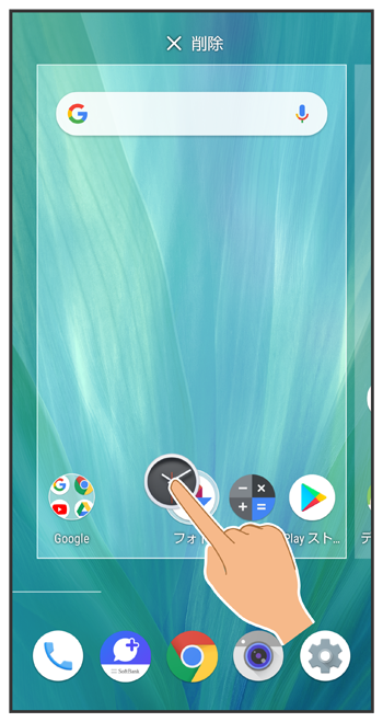 ホーム画面でフォルダをロングタッチ「削除」までドラッグ- お気に入りトレイでも同様に操作できます。
