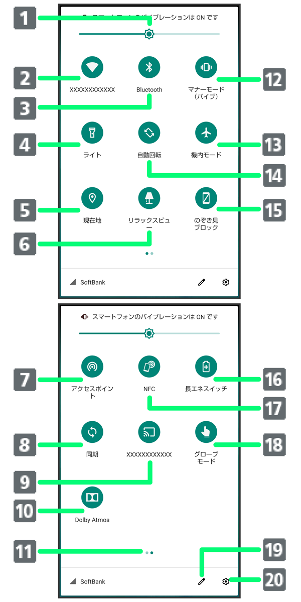 - 機能ボタンの表示領域を左右にフリックすると、シートを切り替えることができます。