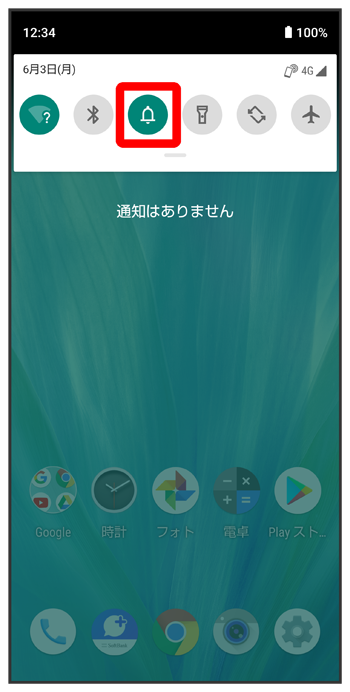 クイック設定パネルからマナーモード(ミュート)に設定する