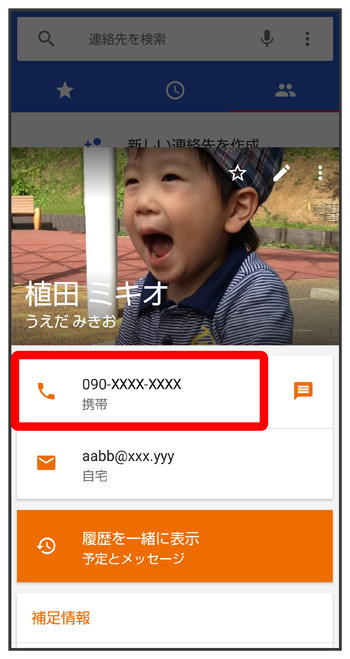 連絡先詳細画面が表示されます。