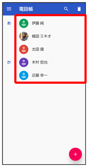 電話帳画面が表示されます。