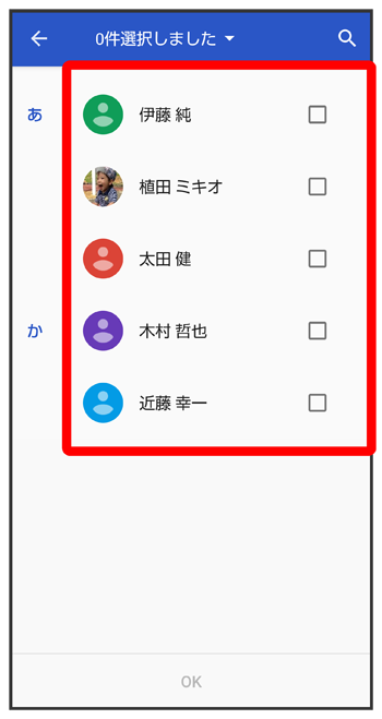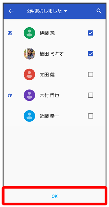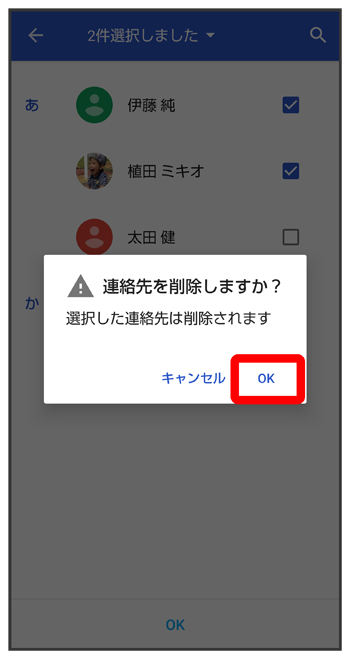 - 複数の連絡先を削除する場合は、続けてほかの対象の連絡先をタップします。