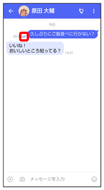 (既読)に変わり、メッセージの既読を相手に通知します。受信したメッセージを確認しても