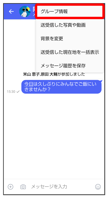 グループメッセージ画面で![]()