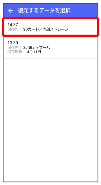 SDカードにバックアップしたデータを選択