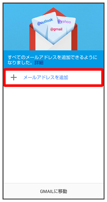 (Gmail)を起動すると、アカウント設定画面が表示され、設定操作を行うことができます。