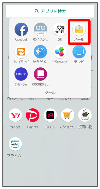 メール詳細画面で- メール一覧画面で、削除するメールのアイコンをタップ(