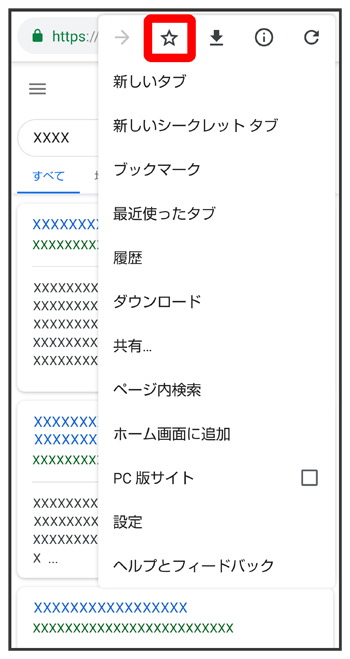 表示中のウェブサイトがブックマークに登録されます。