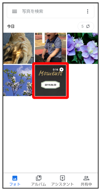 ショートムービー再生画面で//- 保存されていないパターンの動画を保存するときは、をタップします。