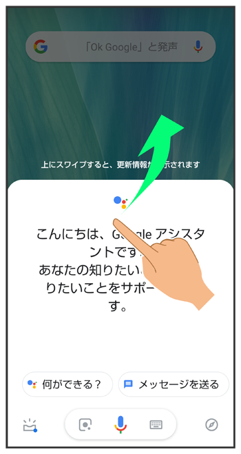 Google アシスタント画面を上にフリック