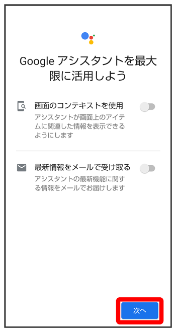 Google アシスタント機能がONに設定されます。