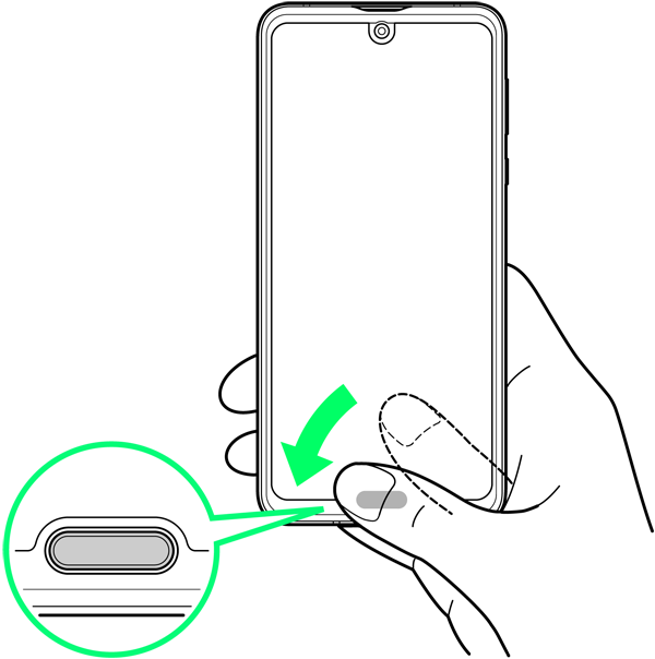 指紋認証を行う画面で、指紋センサーに指を当てる