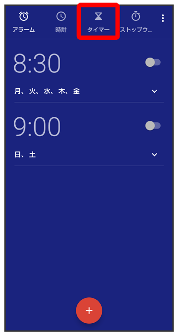 をタップします。 - 画面ロックを解除しているときは、タイマー通知のをタップします。