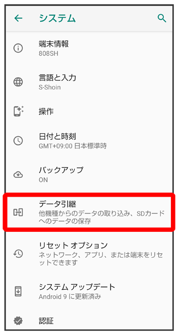- データ引継画面でをタップすると、シャープのウェブサイトで、使いかたを動画で確認することができます。